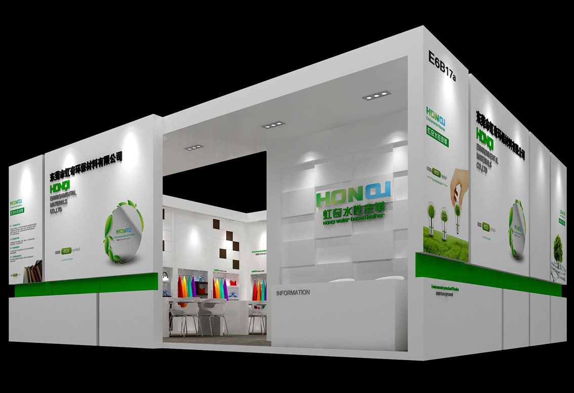 91视频影院展览工厂为虹奇皮革参加2013上海皮革展提供展台制作搭建服务。